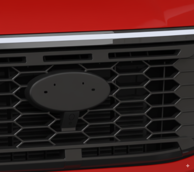 Maak je nieuwe Transit Custom '24+ Offroad-grille compleet met deze logo houder / adapter in mat zwart. Deze houder is optioneel bij te bestellen en biedt de perfecte oplossing om je originele Ford-logo eenvoudig over te zetten.