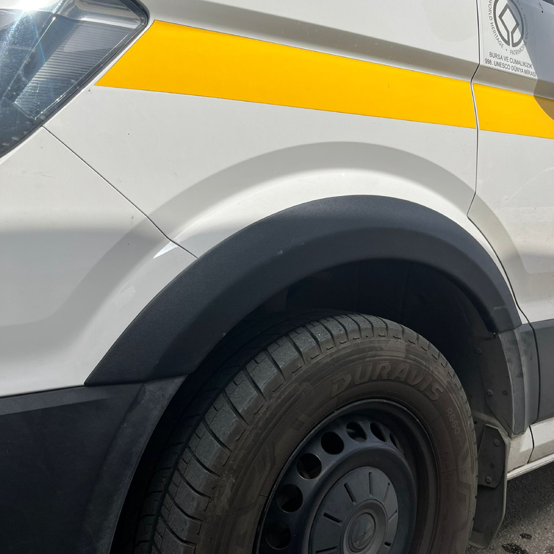 Bescherm jouw VW Crafter of MAN TGE (2017+) tegen opspattend vuil, modder en steentjes met wielkastverbreders van Kiedan Design. Deze set zorgt niet alleen voor extra bescherming, maar geeft jouw bus ook een stoere en professionele uitstraling.