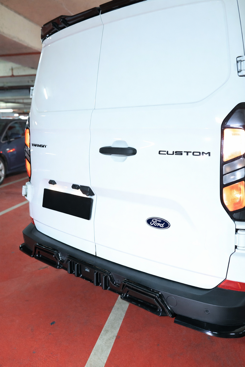 Geef jouw Ford Transit Custom 2024+ een sportieve upgrade met de Rear Valance in glans zwart van Kiedan.
